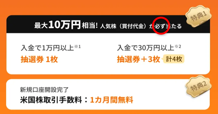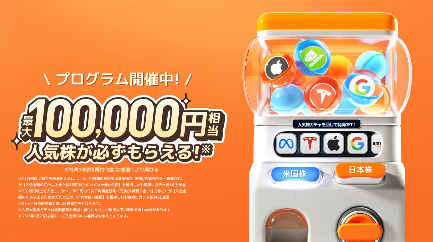 口座開設&入金で人気株が必ずもらえる抽選に参加できるキャンペーンなんて、そうそうない!