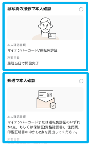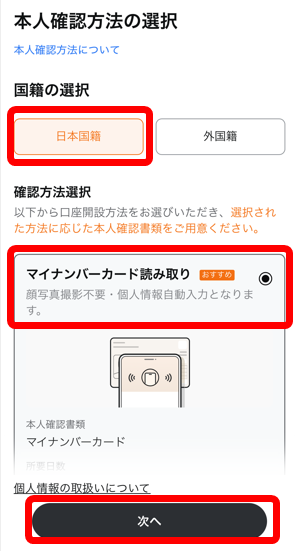 本人確認方法はマイナンバーカード読み取りがおすすめ(顔写真撮影不要だよ)