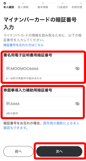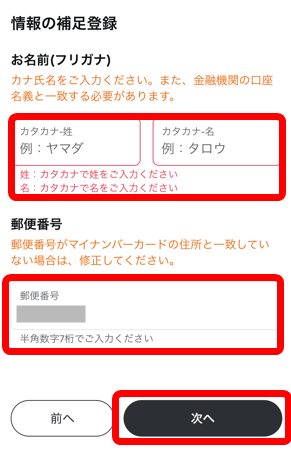このとき郵便番号がマイナンバーカードの住所と一致しているか確認してね