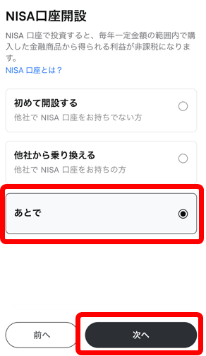 わたしの場合はすでに楽天証券でNISA口座を開設しているのでmoomoo証券ではNISA口座は開設できません。